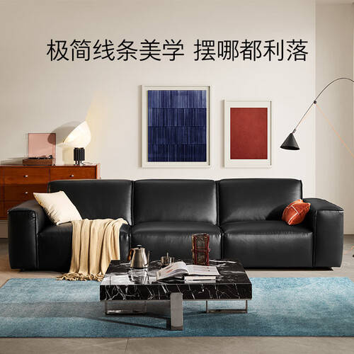 这款沙发采用进口头层牛皮,具有高靠背设计,提供良好的腰背支撑。其尺寸为317cm,适合大多数家庭客厅使用。特别适合追求简约大气风格的用户,兼具舒适与美观。