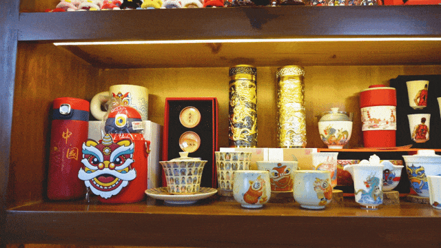 走进店里,不大的空间内摆放着各类醒狮、龙舟文创产品,琳琅满目。其中最受欢迎的产品当数“正丫龙王龙头”,去年销售已超千件,而以“五虎上将”为设计理念的醒狮盲盒系列也十分畅销。